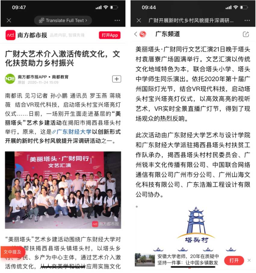 2020年是決勝全面建成小康社會、決戰脫貧攻堅之年。在助力塔頭鄉村振興創新實踐活動中,銳豐文化攜手廣東財經大學積極投身到“美麗塔頭”的文化扶貧、藝術鄉建活動,不僅得到了村民們的熱烈反響,同時也獲得了眾多權威媒體紛紛報道。