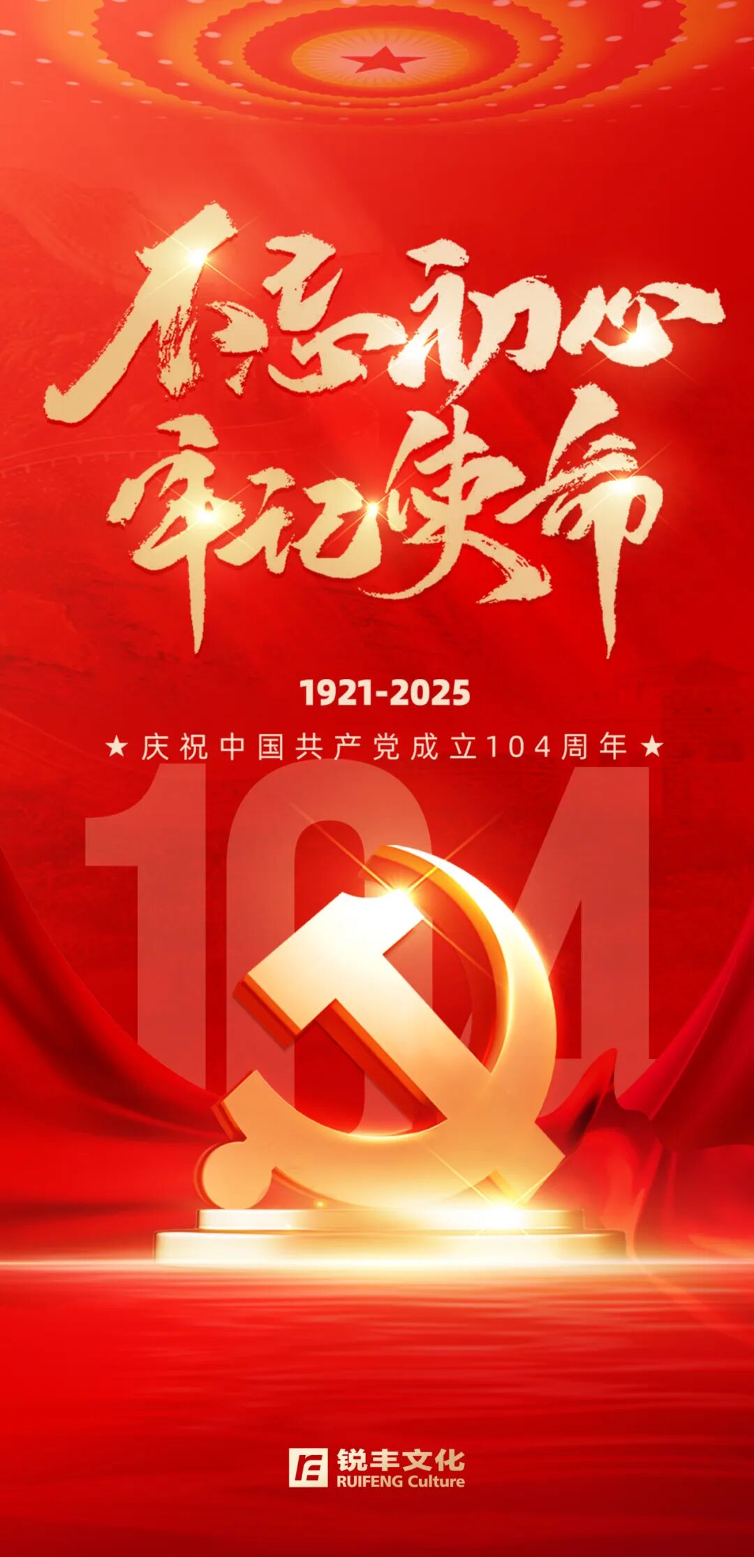從興業路的石庫門到天安門廣場,從南湖紅船的啟航到新時代巨輪的破浪前行,中國共產黨用104年的崢嶸歲月,書寫了一部波瀾壯闊的奮斗史詩。值此建黨104周年之際,銳豐文化黨支部緊扣“紅色引領,匠心逐夢”主題,以一系列扎實舉措和生動實踐,傳承紅色基因,踐行文化使命,向黨獻上最誠摯的祝福。