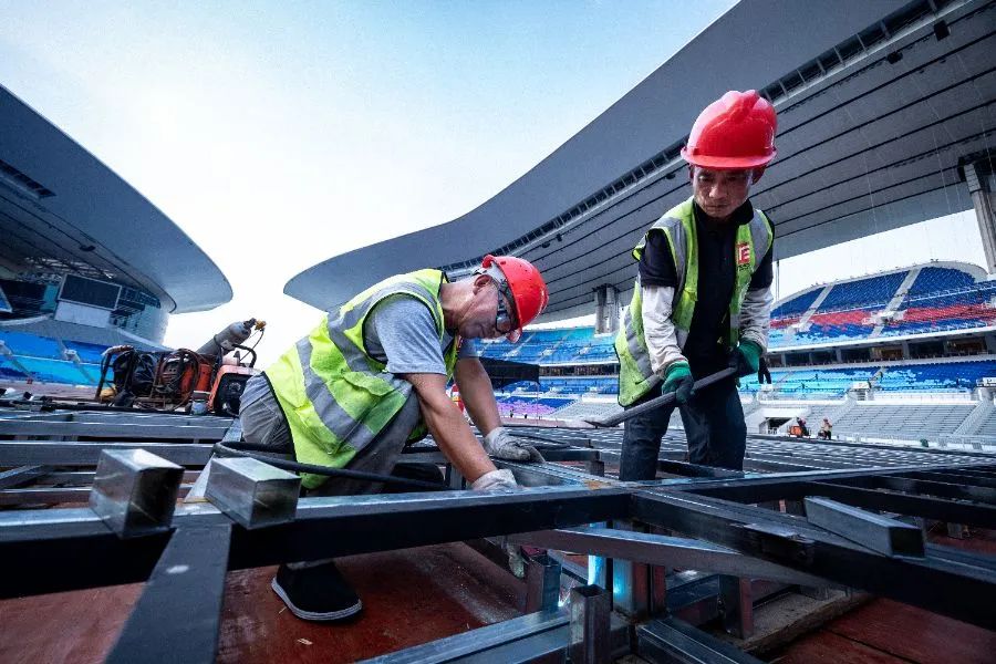 面對持續高溫,十五運會和殘特奧會開幕式項目總監區彩芬介紹,團隊采取多項措施保障施工安全,為每個工程人員配備防暑物資,并在現場設置多個“清涼驛站”,提供降溫飲品。“我們不僅要確保工程進度,更要保障每一位施工人員的健康安全,這是我們對施工人員最基本的責任?!眳^彩芬強調。
