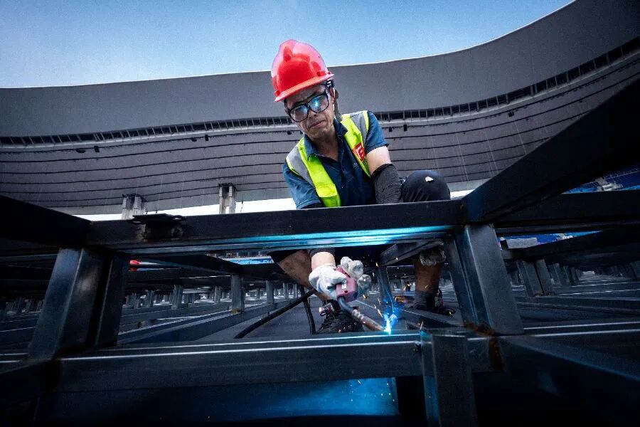 “時間緊、任務重,我們每天從早上7點輪班做到晚上9點半,無間隙施工?!睆垥詣P表示,廣州夏季高溫多雨,臺風天氣頻繁,給露天作業帶來極大挑戰?!坝袝r剛搭好的結構遇到暴雨就得緊急加固,臺風預警一來更要全員應急響應。但再難我們也要頂住,必須保質保量完成任務?!?